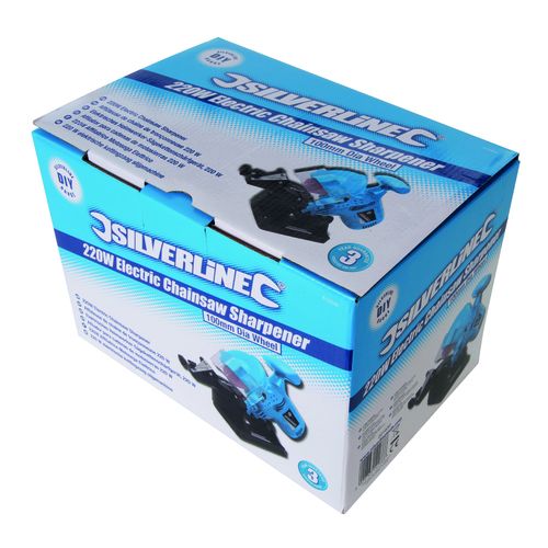 Afilador para cadenas de motosierras. Indicado para afilar cadenas de 3/8" (9,5 mm). Abrazadera giratoria y cabeza basculante con escalas graduadas. Incluye protector para la muela y protector ocular transparente.