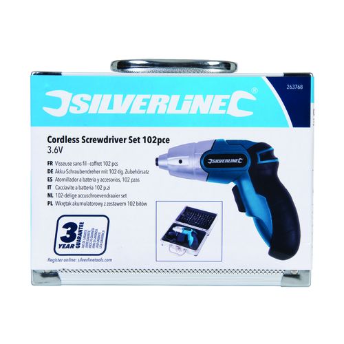 Atornillador ideal para casa recargable con luz de trabajo incorporado,cambio de sentido de giro con bateria de litio para mayor rendimiento. Incluye maletín de transporte y accesorios con 102 pzas.