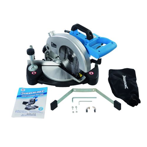 Sierra de banco para realizar cortes rectos, biselados, a inglete y compuestos (inglete + bisel) sobre madera y otros materiales. El disco de corte suministrado es compatible para cortar maderas, maderas sintéticas y compuestas.