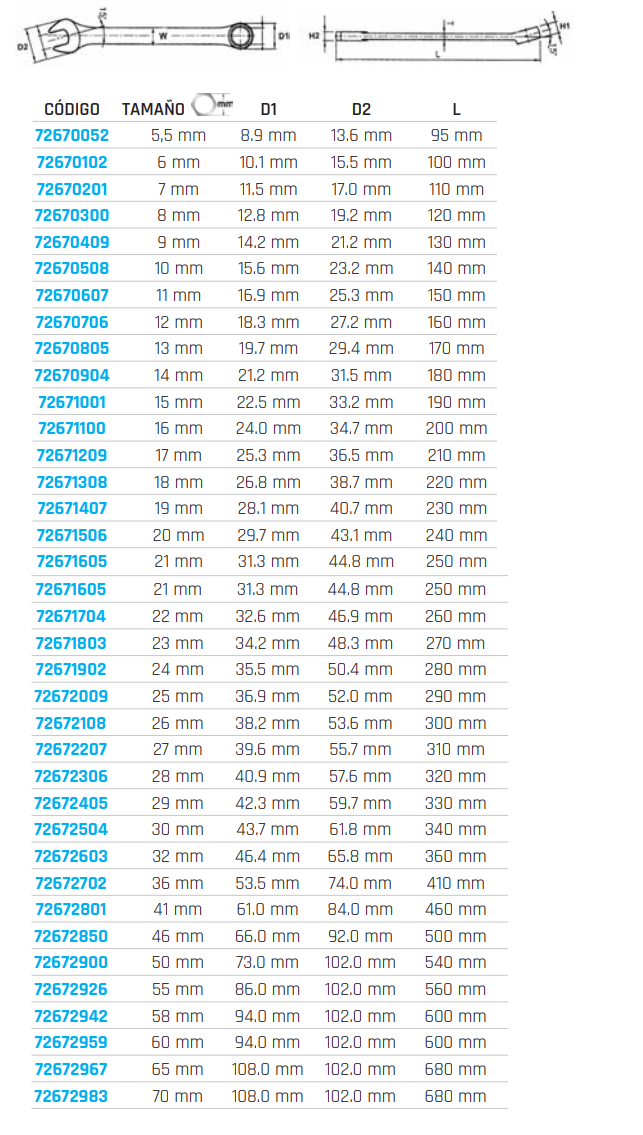 Llaves combinadas de 6 a 32 mm, métricas, DIN3318-ISO7738. Offset 15 grados,cromo vanadio,Acabado mate.