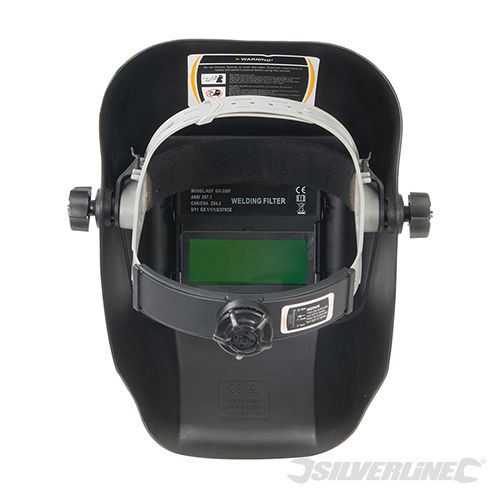 Máscara para soldar fotosensible con funcionamiento solar. Indicada para soldadura MIG, TIG y soldadura por arco (MMA/GMAW). Arnés para la cabeza ajustable en 4 posiciones diferentes. Doble sensor con velocidad de auto-oscurecimiento de 1/5.000 s. Tono claro: DIN3. Tono oscuro: DIN11. Protección UV/IR: DIN16. Conforme EN379 y EN175.